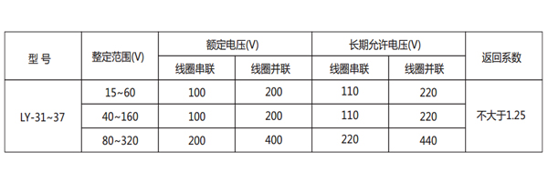 三、LY-33電壓繼電器的參數