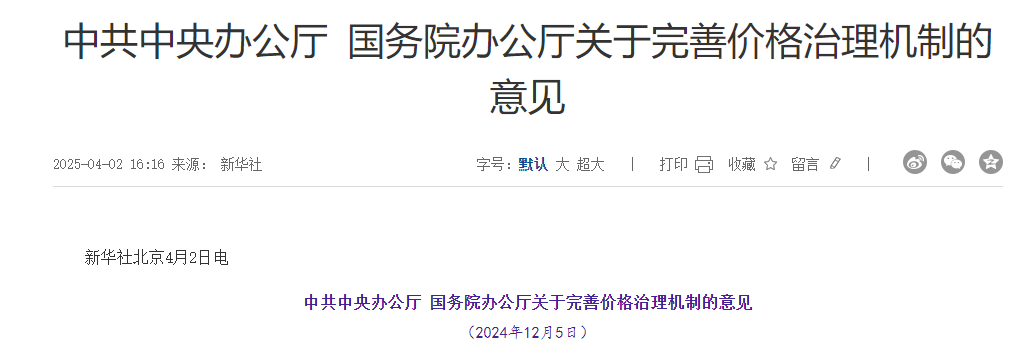 近日,中共中央辦公廳、國務(wù)院辦公廳發(fā)布《關(guān)于完善價(jià)格治理機(jī)制的意見》。文件要求,圍繞充分發(fā)揮市場在資源配置中的決定性作用、更好發(fā)揮政府作用,健全市場價(jià)格形成機(jī)制,創(chuàng)新價(jià)格引導(dǎo)機(jī)制,完善價(jià)格調(diào)控機(jī)制,優(yōu)化市場價(jià)格監(jiān)管機(jī)制,提高資源配置效率。文件提到,加快重點(diǎn)領(lǐng)域市場建設(shè)。推進(jìn)重要商品現(xiàn)貨、期貨市場建設(shè)...